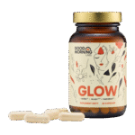 GLOW to suplement opracowany, by wspierać zdrowie skóry, włosów i paznokci od wewnątrz. Zawiera kolagen morski, witaminy C i E, biotynę, cynk, selen, kwas hialuronowy i ekstrakt z pestek winogron (OPC). Witamina C wspiera naturalną produkcję kolagenu, witamina E i OPC chronią przed stresem oksydacyjnym, a biotyna i selen dbają o kondycję włosów i paznokci. To produkt dla osób zmatowioną skórą, osłabionymi włosami i paznokciami lub narażonych na stres oksydacyjny.